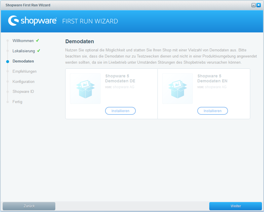 Falls Du in Deinem Shop Demodaten installieren möchten, kannst Du dies nun tun.