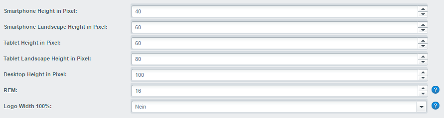 Logo Width 100%: Bei manchen Themes ist es notwendig die Breite des Logos auf 100% zu setzen, damit das Logo in der korrekten Größe angezeigt wird. Versuche es zuerst ohne diese Option.