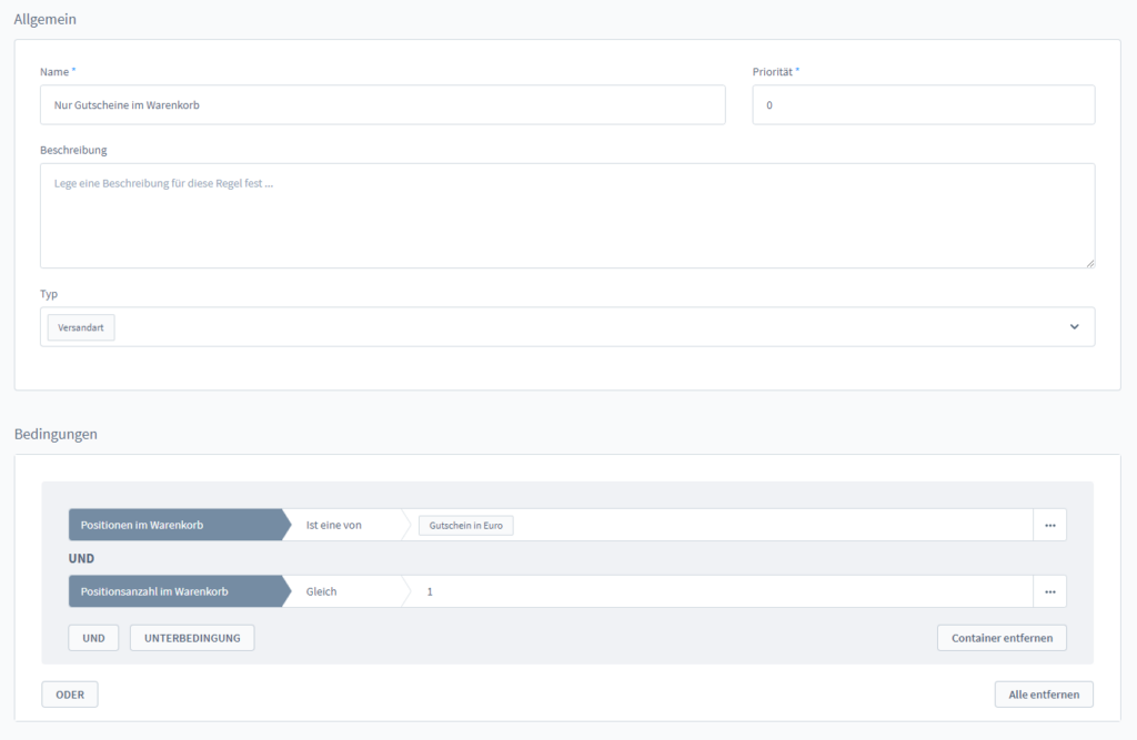 - Name: Nur Gutscheine im Warenkorb