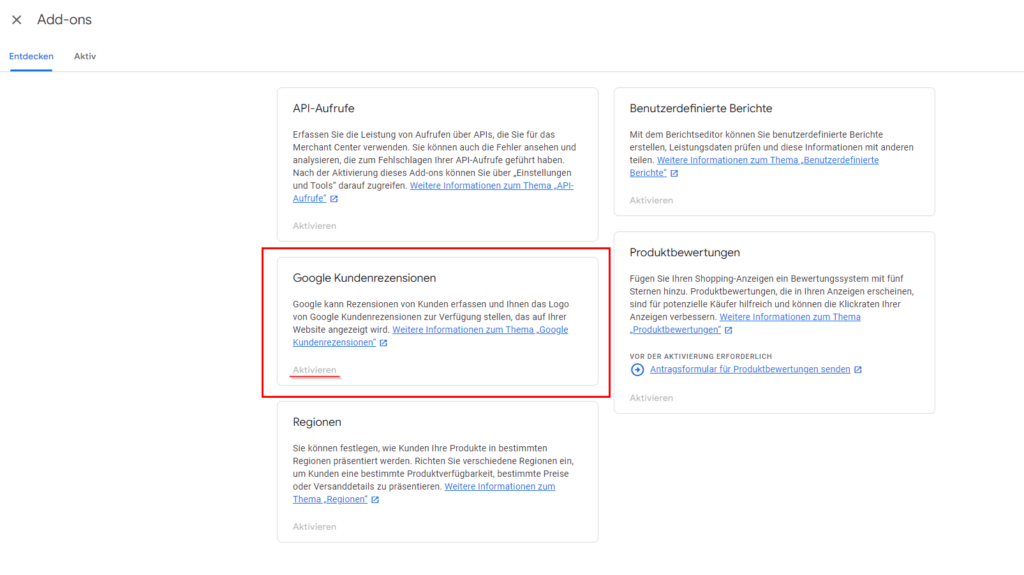Zur Aktivierung musst Du den Vertragsbedingungen von Google zustimmen. Anschließend sind die Kundenrezensionen schon aktiviert.