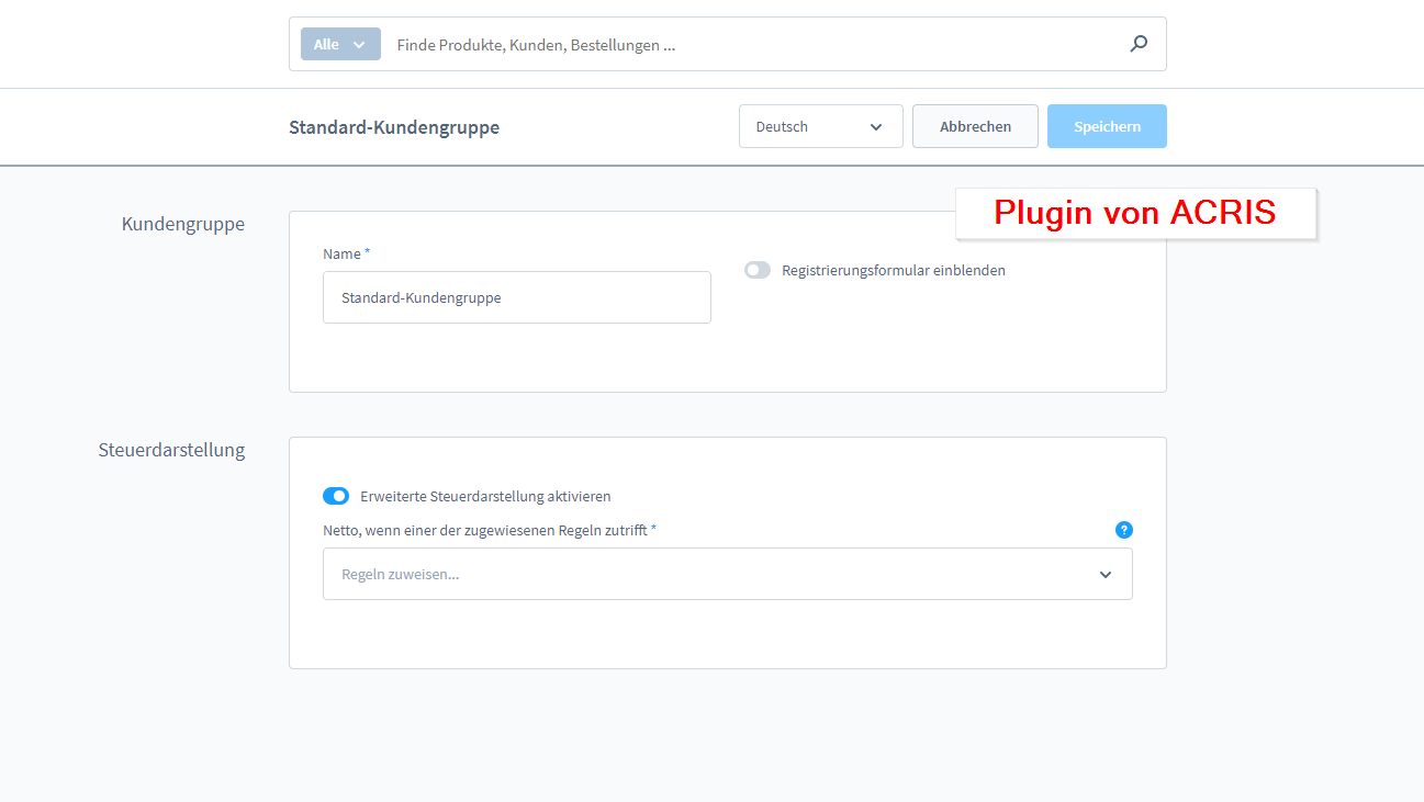 Die Funktion des Plugins von ACRIS der angepassten Steuerdarstellung für Kundengruppen, ist für Unternehmen mit vielen deutschen B2B-Kunden von Vorteil.