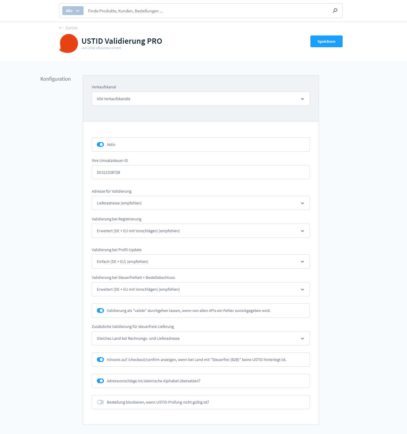 Das Plugin von LENZ bietet ebenso tolle Funktionen, die einen im Alltag mit den B2B Kunden unterstützen. Die Einrichtung des Plugins benötigt ein paar Minuten aufgrund der vielen Einstellungsmöglichkeiten. Aufgrund dieser vielen Einstellungsmöglichkeiten kann das Plugin individueller an die eigenen Shop-Bedürfnisse angepasst werden. Sind die Einstellungen vorgenommen, funktioniert die Validierung der USTID ohne Probleme.